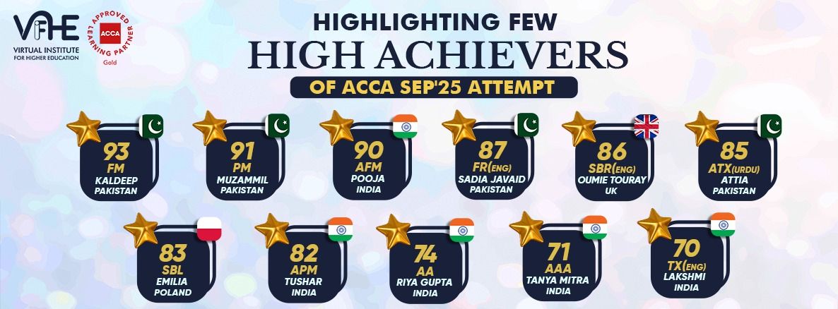 ACCA, the Association of Chartered Certified Accountants, has announced the results and pass rates for the Sep'25 exam session. 98,551 entered for the Sep sitting, which saw 112,799 exams completed. A total of 3,807 students completed their final exams to become ACCA Affiliates.  The option for remotely invigilated exams has notably gained popularity among students.VIFHE extends its sincere congratulations to all students who successfully